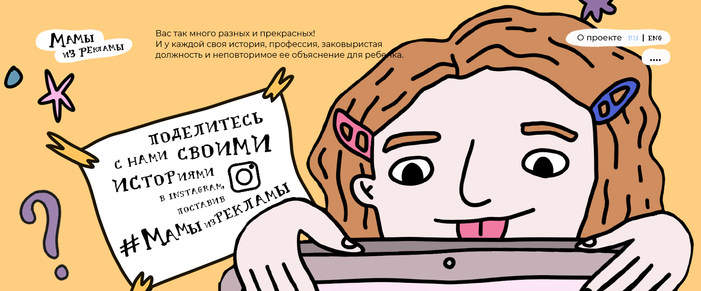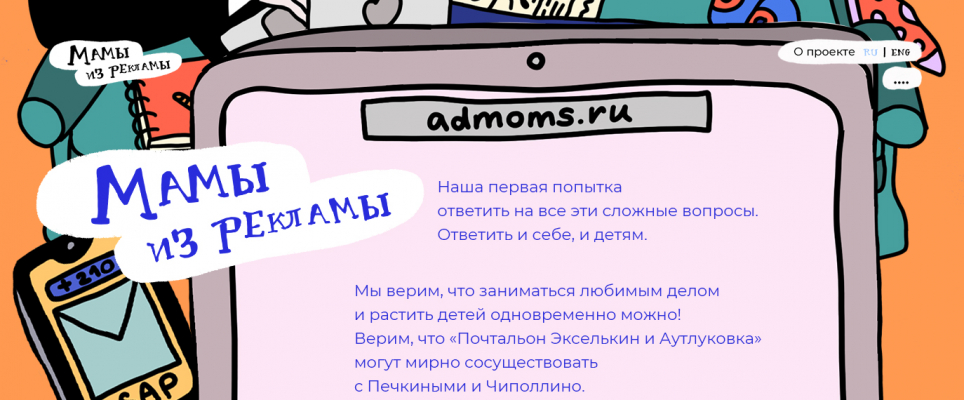We noticed that in children’s books mothers usually don’t work, dedicating themselves to household chores, or if they do work, they most often end up being teachers. We decided to change this unfair perception and show the life of a family where the mom works in digital! The book’s main characters are mothers who can build the tallest Lego tower during a conference call. Mothers who can push a stroller while answering 10 messages at the same time on Telegram and talking with their kids about what’s going on around them. These are mothers who organise focus groups at home and take their kids to photo shoots. The book also contains recommendations by a clinical psychologist and cognitive and behavioural therapist Alina Kostova. We also created a vibrant website for the project — admoms.ru — where users could leave requests for the book or simply read its digital version.