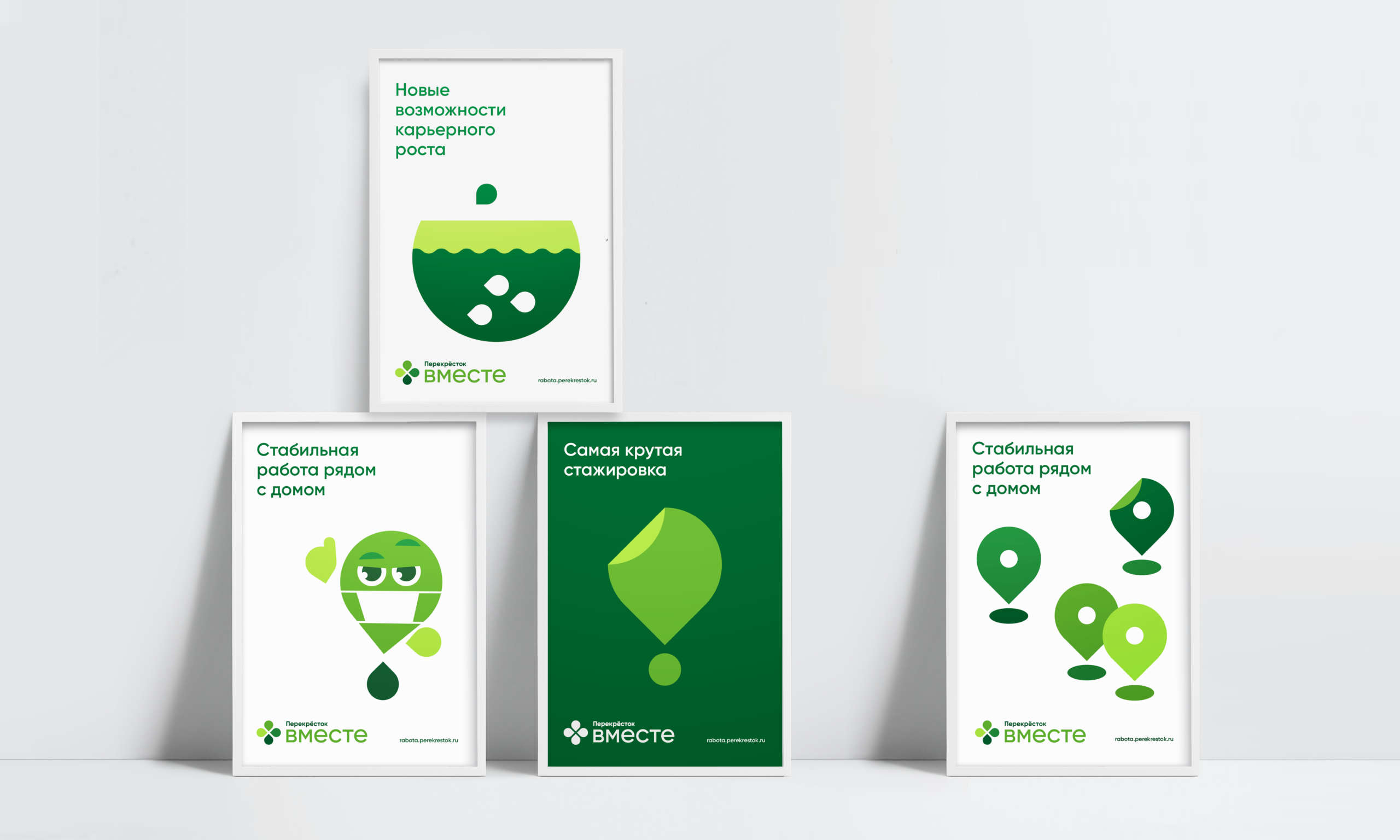 «While we were working on rebranding, we decided to also focus on an internal HR brand and primarily on its mascot. We came up with a new, energetic, lively and fun character – a green Perek. The character’s appearance is similar to Perekrestok’s logo: an upper petal was turned into a head, the ones on the side – into arms, and the lower ones – into the mascot’s body. In addition, our character can change and portray specific employees. We also created posters and graphics that went well together with the character», — says Vova Lifanov, a co-owner of Suprematika agency.
