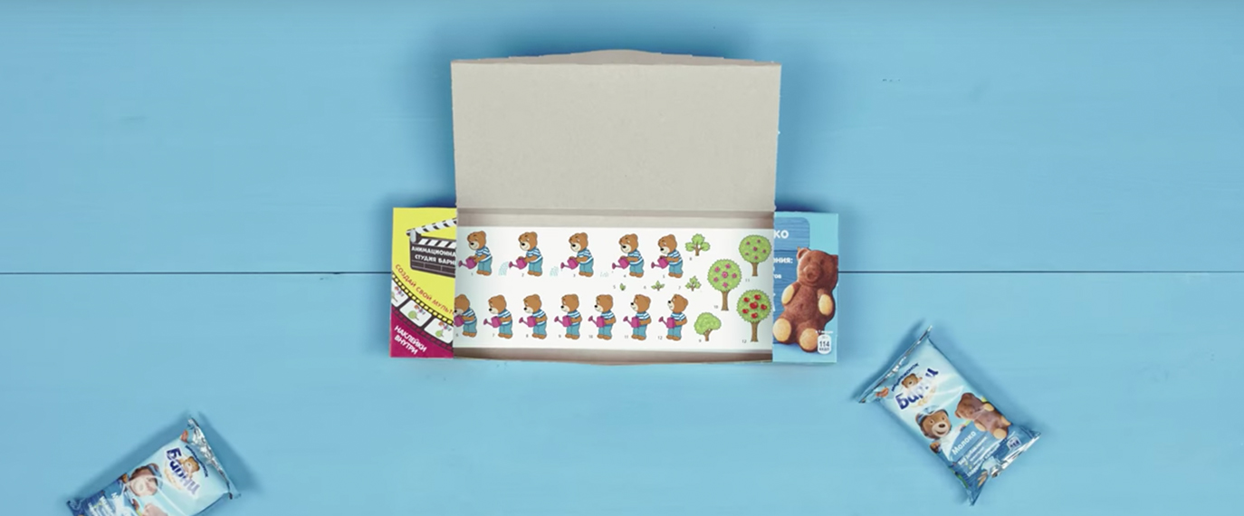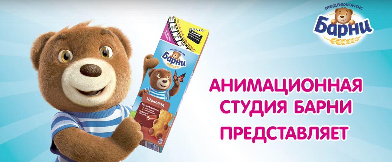 Especially for those who adore cartoons, Barni Bear has put stickers in every biscuit package, which will help you create your own cartoon! We also have designed барни.рф website, where you can see the products and watch training videos on how to make a cartoon at home.