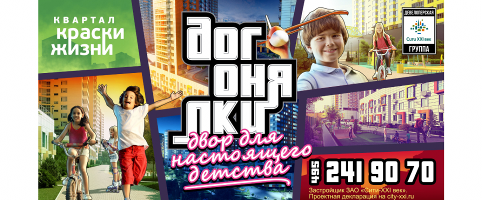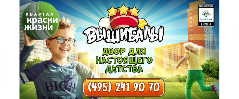 «Краски Жизни» – это жилой комплекс с безопасными и созданными для детей дворами. В квартале «Краски Жизни» у детей будет реальное детство, полное настоящих впечатлений – детство без компьютерных игр и видео-приставок. В основу рекламной кампании легли игры детства современных родителей: зарница, войнушки, казаки-разбойники и др. Мы покажем, что у детей, которые живут в квартале Краски Жизни игра Angry Birds, в отличии от сверстников из других районов, будет на самом деле игрой в “Вышибалы” со сверстниками.