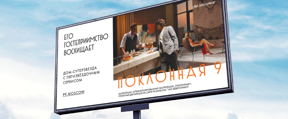 Мы обновили позиционирование для премиального дома «Поклонная 9» от ANT Development. Совместно с агентством Feelfactory, мы освежили айдентику бренда, собрали новый гайдбук, подготовили мерч и ветрозащитные экраны для дома.