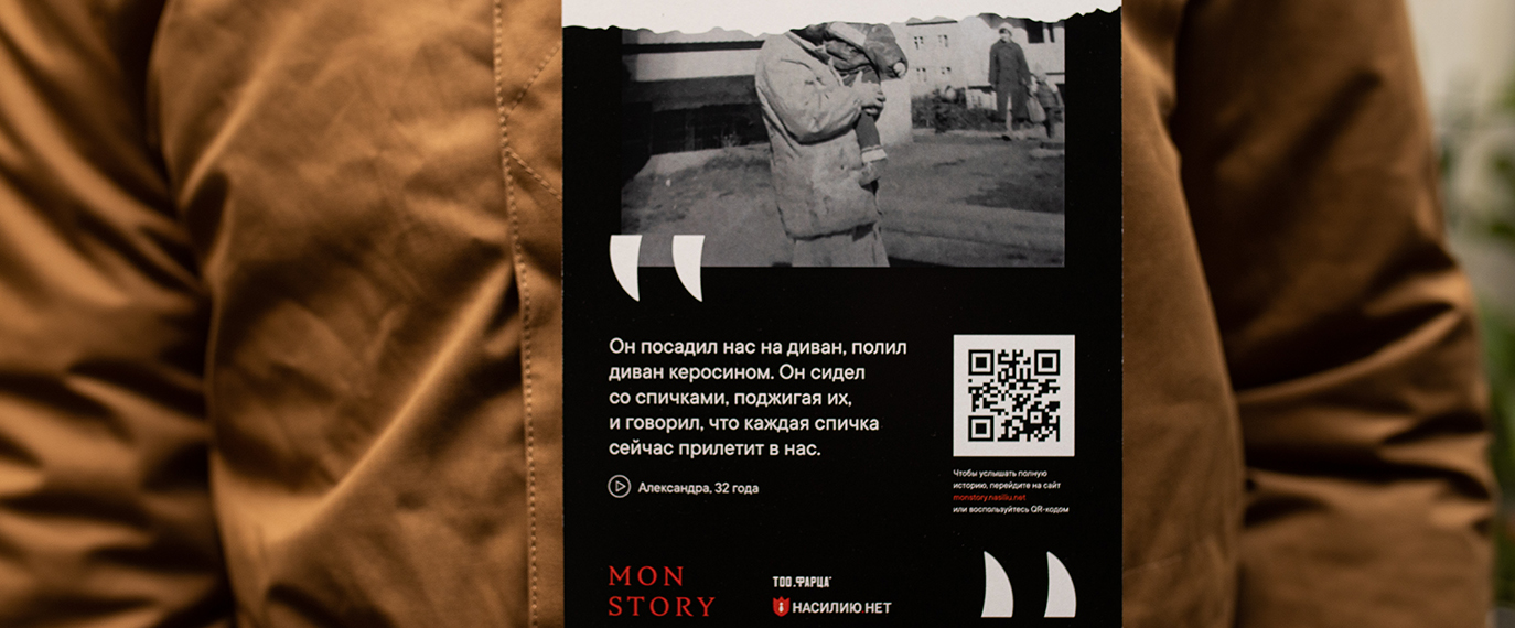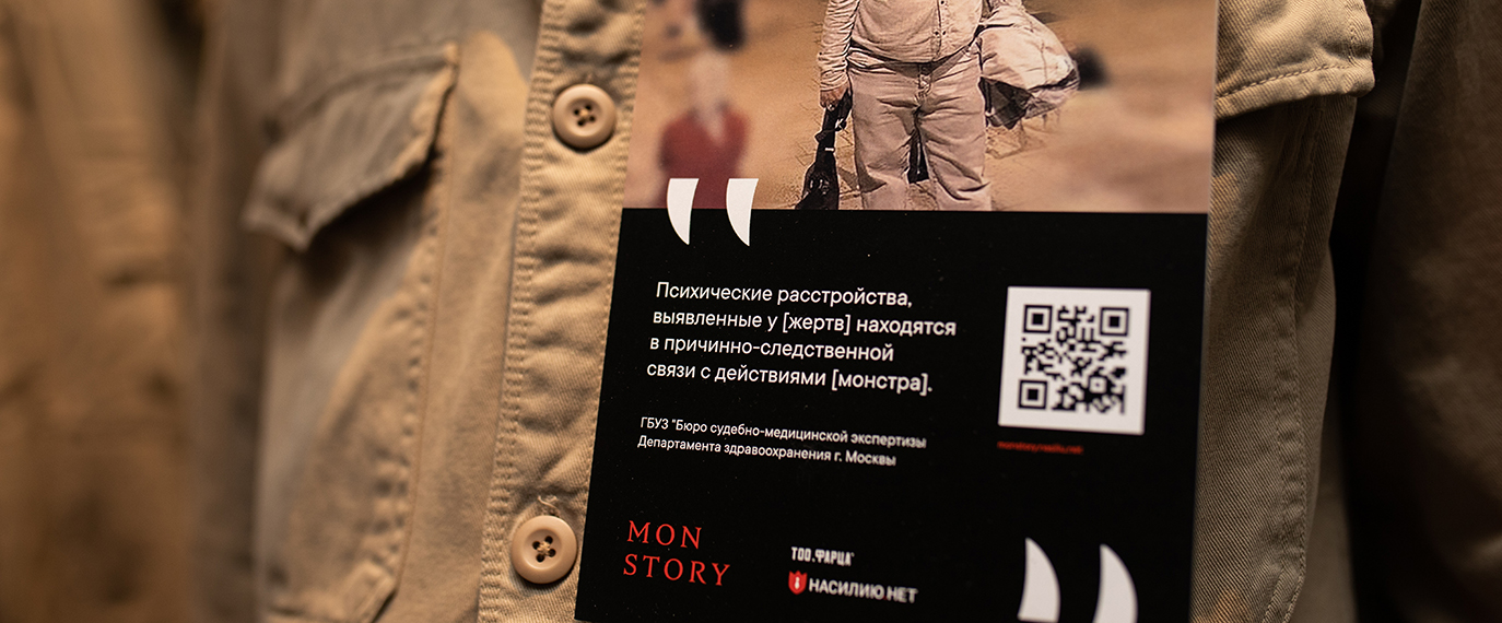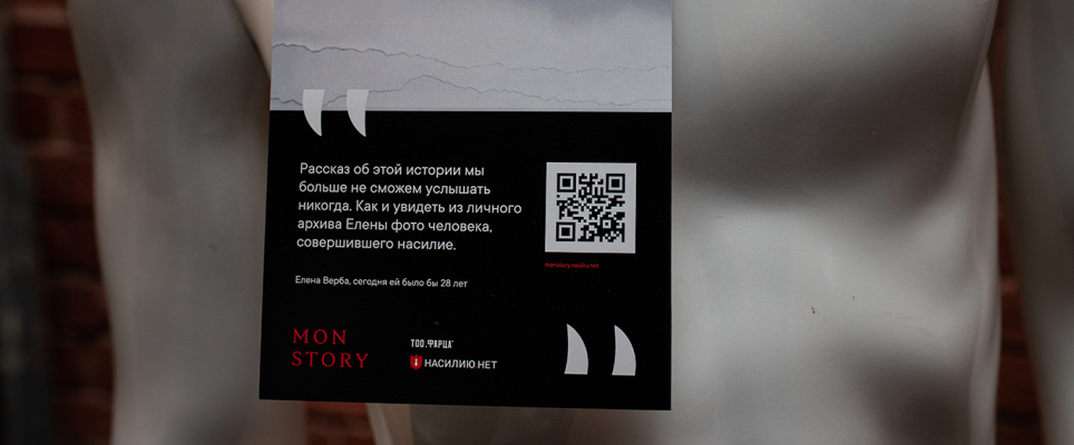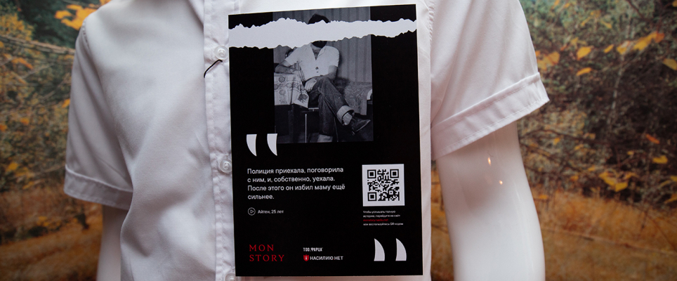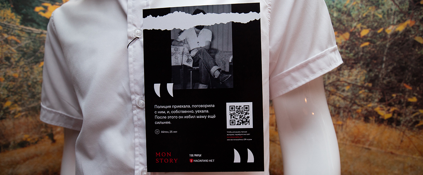 В канун Хэллоуина вместе с Центром по работе с проблемой насилия «Насилию.нет» и креативной PR-студией «RODNYA» мы открыли магазин самых ужасных костюмов, где на манекенах не было масок, когтей или клыков, вместо этого покупатели увидели одежду садистов, педофилов и абьюзеров. У каждого костюма есть своя история, которую нам рассказала жертва. Эти истории можно послушать на сайте проекта monstory.nasiliu.net, куда вели вели QR-метки на манекенах. Там же можно поддержать проект и перевести деньги Центру «Насилию.нет».