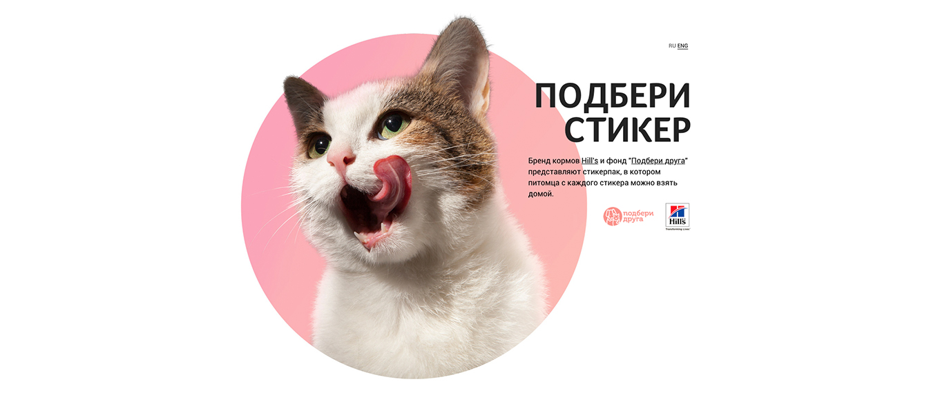 Вместе с брендом кормов Hill’s и фондом «Подбери друга» мы запустили проект специально для мессенджера Telegram – стикерпак, посвященный бездомным животным, ищущих себе новую любящую семью.