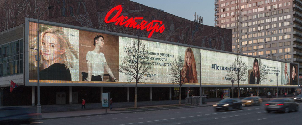 В рамках международной кампании Dove #ShowUs мы организовали фотосессию, призванную освободить женщин от стереотипов о красоте и заявить о том, что красота каждой женщины – уникальна. Фотоснимки реальных женщин без ретуши в течение двух недель были размещены на медиафасаде кинотеатра «Октябрь» на Новом Арбате. Кроме того, была запущена петиция с призывом использовать к фотографиям, подвергающихся ретушированию и использующихся в рекламных материалах, соответствующую маркировку «фотография отретуширована».