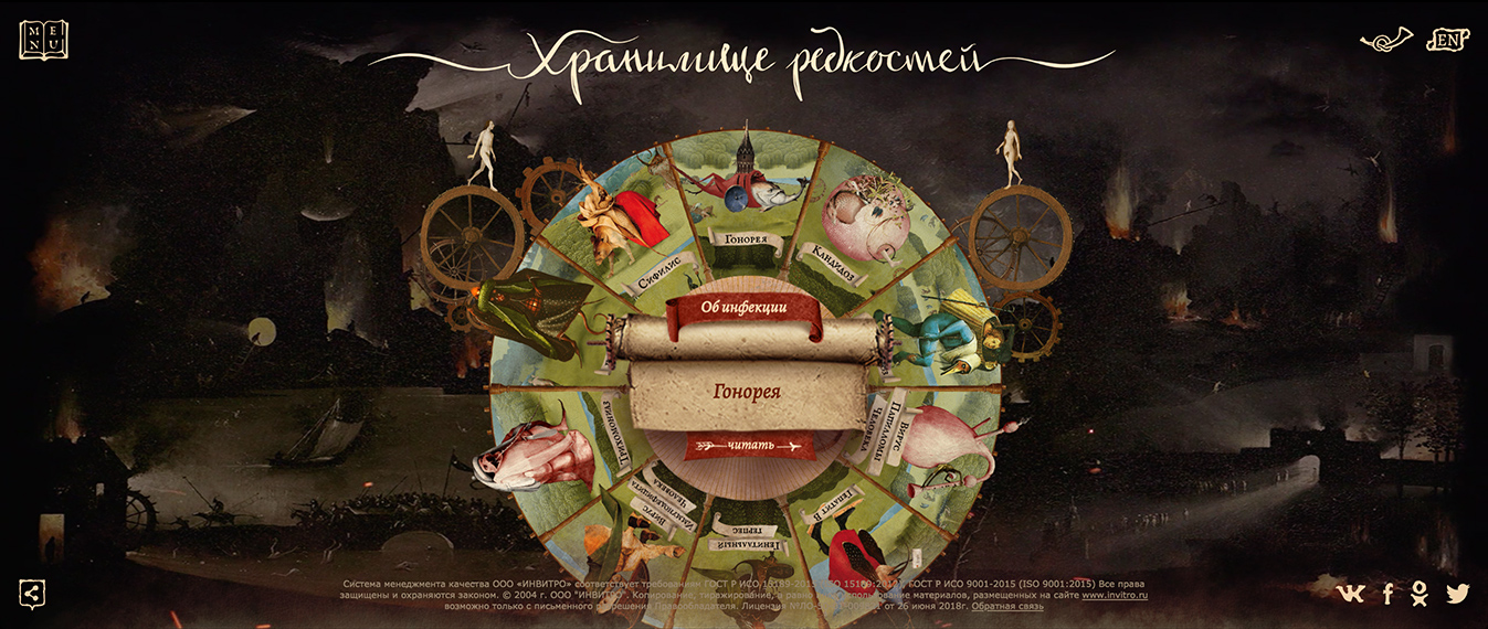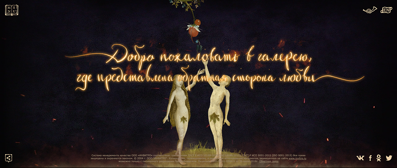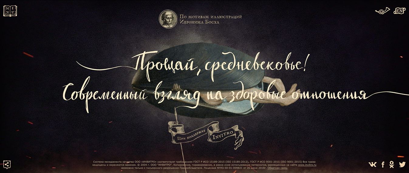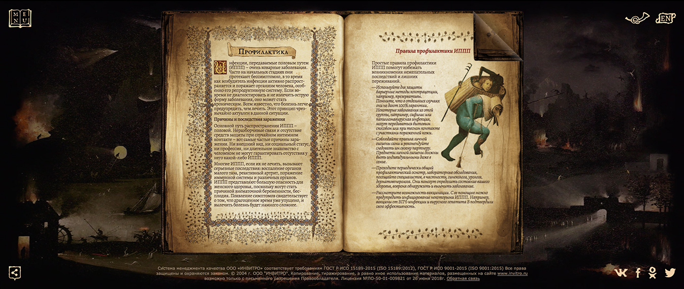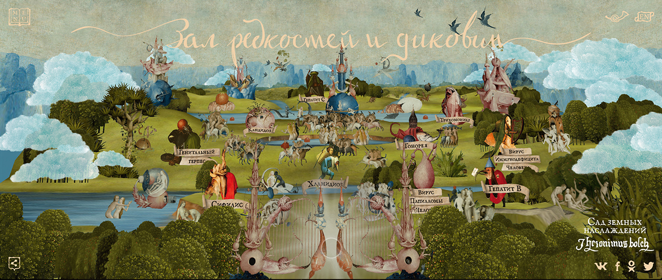 Совместно с медицинской компанией ИНВИТРО мы разработали сайт об ИППП на основе картин Иеронима Босха. Проект позволяет в интерактивной форме узнать об истории, опасности и профилактике ИППП. За основу проекта был взят один из самых известных триптихов Босха – «Сад земных наслаждений».