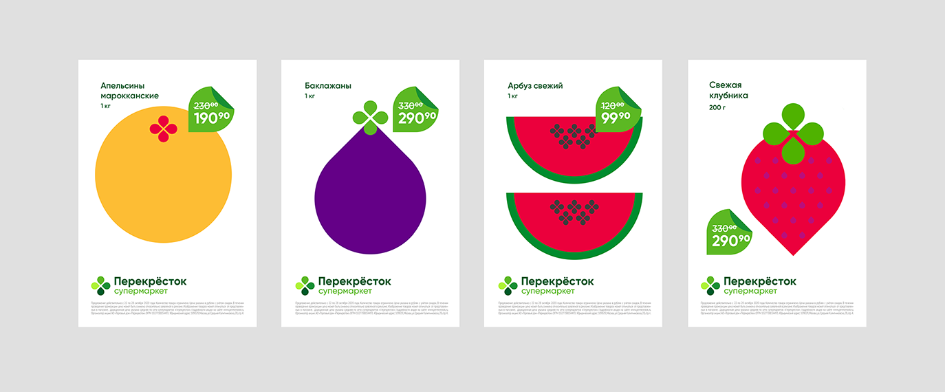«Избавив наконец визуальный образ от всего, что связано с ассоциациями дорожного перекрёстка: и пешеходной зебры из шрифтового решения, и лепестковой развязки из символа — мы смогли сосредоточить образ на самом главном. Перекрёсток — это зелёный современный бренд, заботящийся о свежести и качестве продукции. И развели эту простую и понятную мысль на всю визуальную коммуникацию бренда. Ну и вернули букву Ё в название, без неё надписи, кажется, было одиноко.» — Владимир Лифанов.