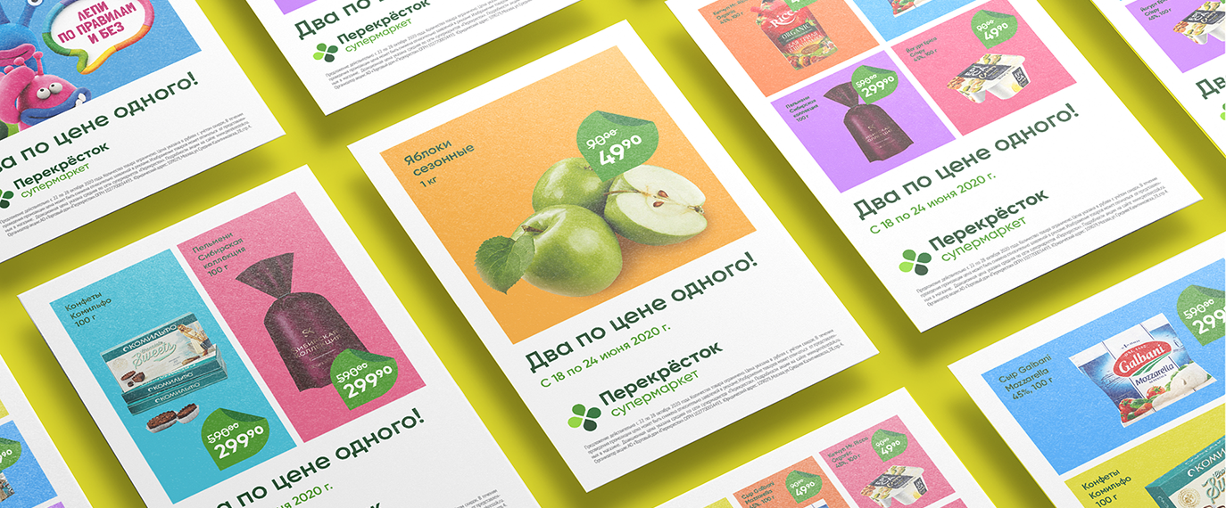 Совместно с агентством Супрематика мы провели масштабный ребрендинг сети «Перекрёсток», приуроченный к ее 25-ти летию. Мы полностью обновили фирменный стиль магазина.
