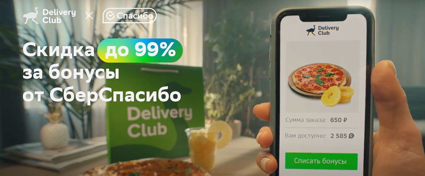 Совместно со СберСпасибо и Delivery Club мы выпустили серию видеороликов, которая рассказывала клиентам об одном из самых популярных и выгодных способов потратить накопленные бонусы в рамках действующей акции.