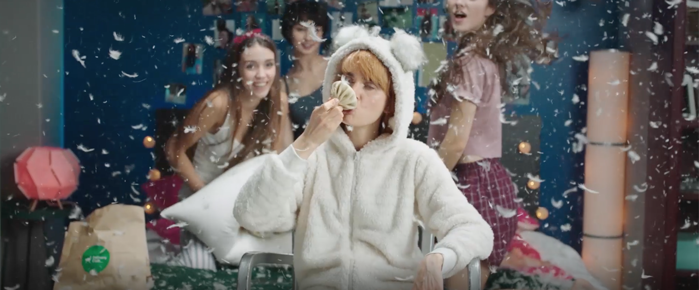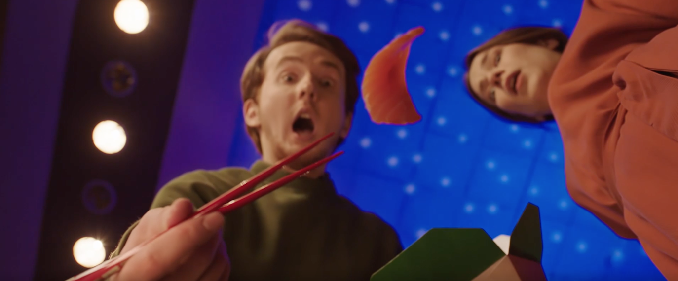 Герои ролика влюблены в еду, которую они покупают со скидкой в Delivery Club. Чтобы наглядно показать невероятный аппетит героев в ход пошли все лучшие приемы: правило пяти секунд, в течение которых можно съесть упавший кусок еды без вреда для здоровья, «сёрбанье» хинкали и своеобразная интерпретация самой известной фрески Микеланджело.