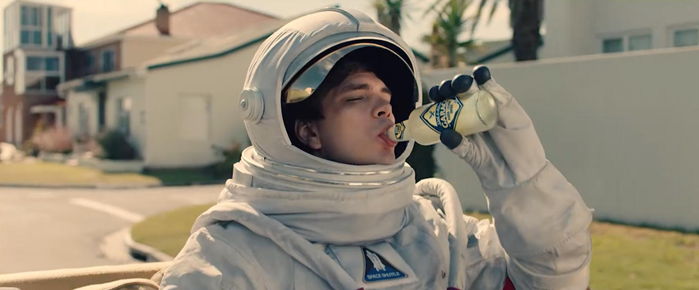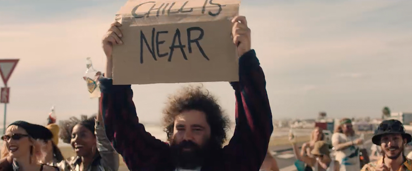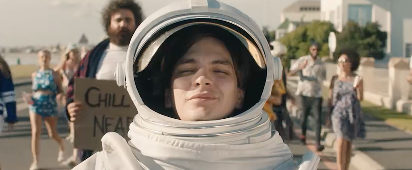 В ролике Слава в костюме космонавта совершает эпичный пролет по калифорнийскому побережью, собирая за собой шествие из местных отдыхающих и призывая всех желающих присоединиться. В качестве средства передвижения он выбрал самоходный желтый диван.